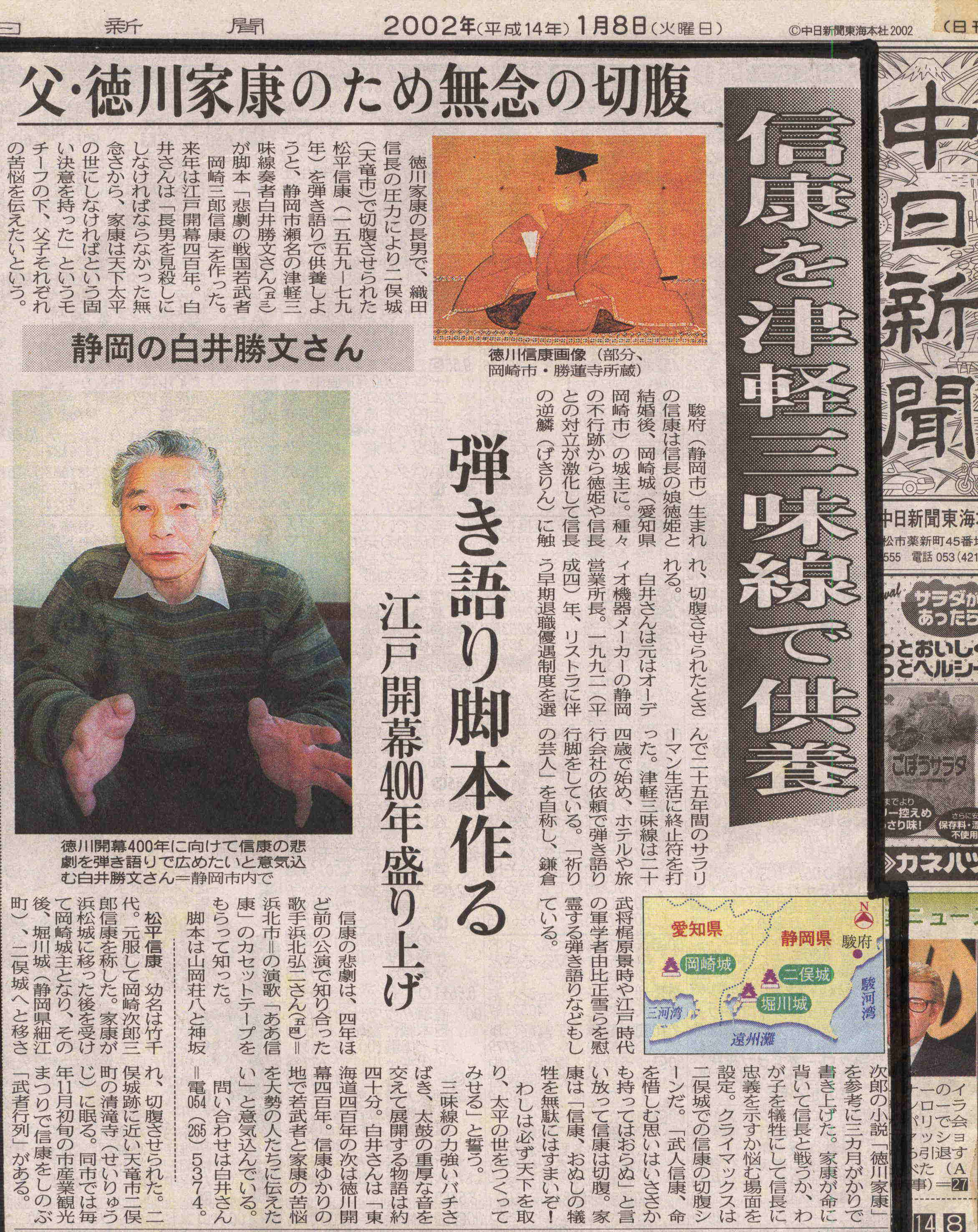 を書き上げた、津軽三味線奏者白井勝文さん(53静岡市瀬名)が29日、信康ゆかりの天