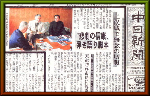 切腹をした信康と父家康の苦悩を、四十五分の弾き語り脚本として仕上げた。この日午前、