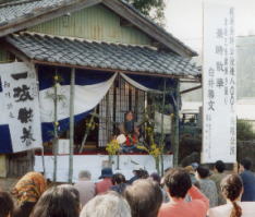 この日の舞台は公園内のほこら。今年は自害からちょうど八百年目に当たり、白井さんは景時