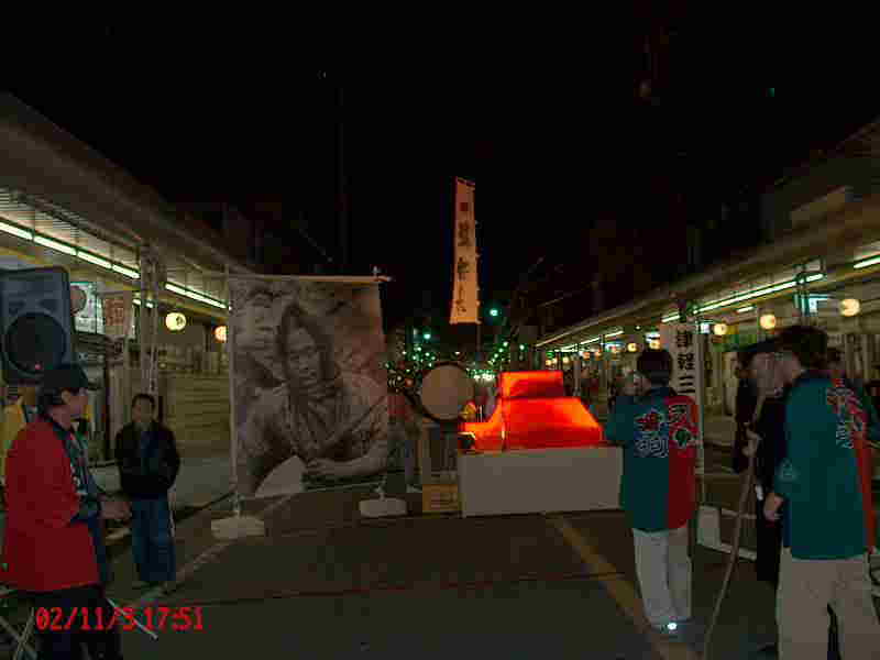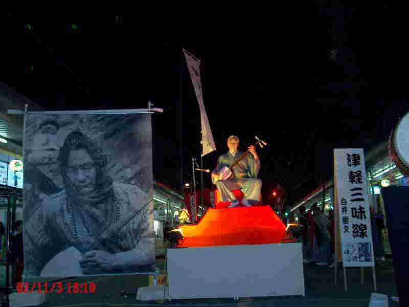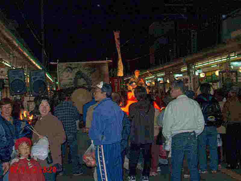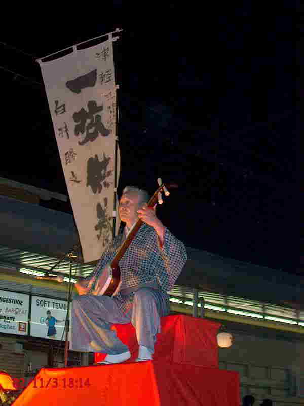 この白子町は由緒ある所で天正14年(1586)に小川孫三が徳川家康の 伊賀越えの危機を救った褒章としてこの地が与えられた。その後藤枝宿と して栄え当時から火の神様の秋葉信仰も深くそれに因み天狗まつりが行 われている。まつりの実行委員の一人に津軽出身の方がおりその人の提 案で津軽三味線のアトラクションが行われる事になった。天狗おどりや天狗 行列など盛大に催され祭りの雰囲気を守り立てていた。